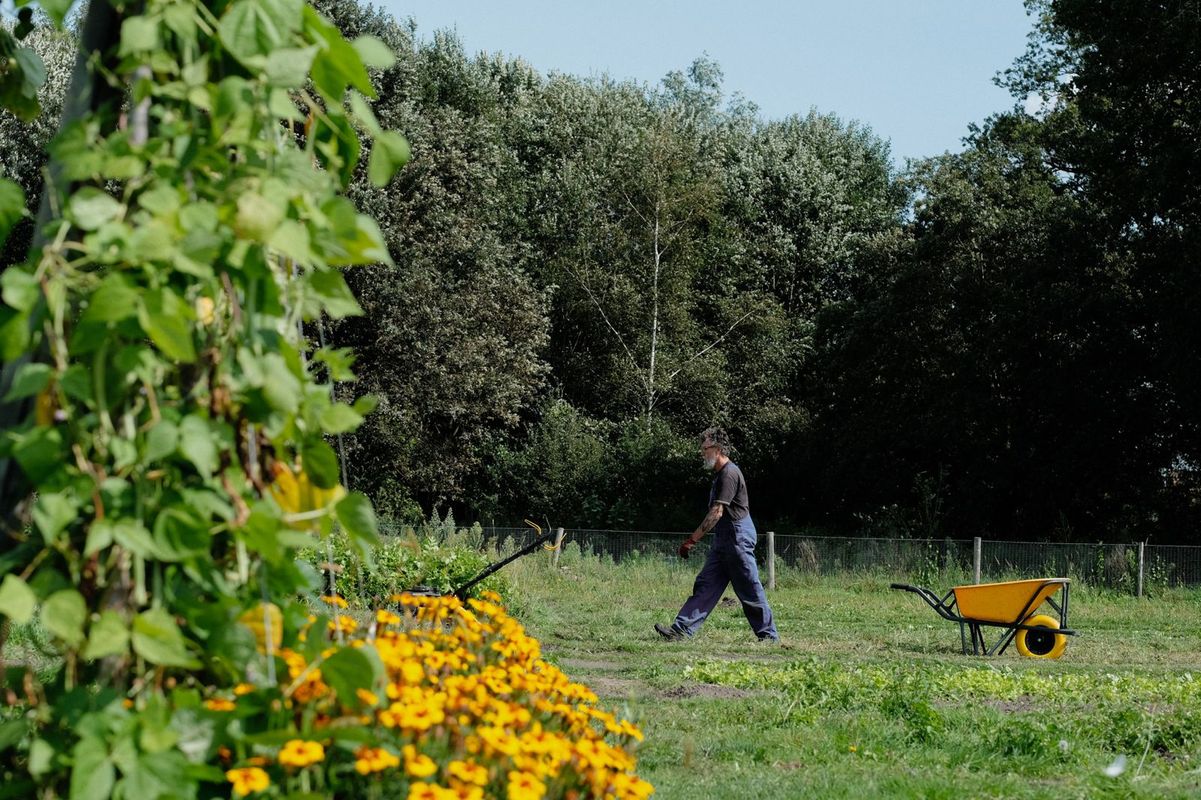 Een aantal vrijwilligers van Stadsakkers Eindhoven schuift ook aan. Meer dan vijftig mensen zetten zich op twee locaties al dik tien jaar in voor het samen kweken van biologische groenten voor iedereen die het echt nodig heeft, zonder winstoogmerk. Van zaaien tot oogsten: deze groep vrijwilligers zorgt dat heel wat lokale hulporganisaties kersverse producten krijgen en ze kunnen altijd een helpend handje gebruiken.